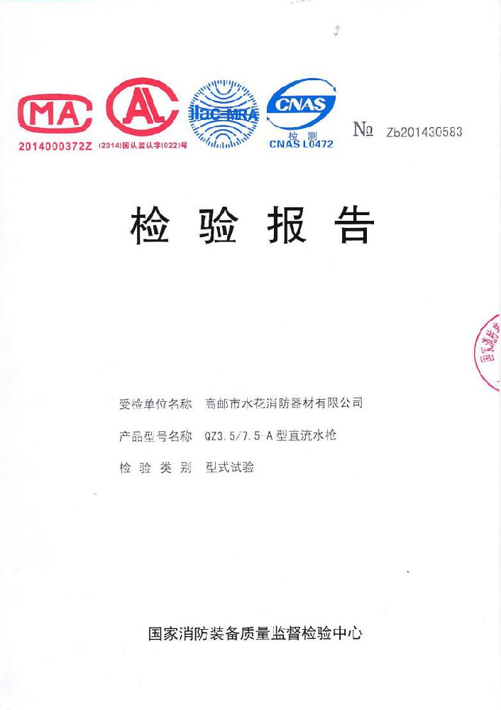 我廠創(chuàng)辦于一九七六年六月,現(xiàn)有職工600人,其中各類技術(shù)和管理人員68人。擁有固定資產(chǎn)5000萬(wàn)元,占地面積35000多平方米,建筑面積25000多平方米。建立了完善的質(zhì)量體系,取得多種“計(jì)量合格確認(rèn)證書”,并成為江蘇及多省的消防協(xié)會(huì)會(huì)員單位。工廠技術(shù)力量雄厚,生產(chǎn)和檢測(cè)設(shè)備齊全,工藝先進(jìn)。生產(chǎn)“水花”牌水帶接口: KDK65, KD65,KY65,KN65。消防水槍: QZG3.5/7.5, QZ3.5/7.5,QP8/0.7Z泡沫水槍。室內(nèi)消火栓: SN65, SNW65-I,SNZ65, SNZW65-I。 消防軟管卷盤JPS0.8-19/25。生產(chǎn)的“郵花”牌,消防有襯里水帶:65-8、10、 13、 16、20、 25型; 80-16、 20、25型。水帶接口: KD50、65; KY50、65;KN65。消防水槍: Q2Z3.5/7.5、 5。 室內(nèi)消火栓: SN65, SNW65-I, SNZ65, SNZW65-I。 并于二零一五年五月通過(guò)公安部消防產(chǎn)品合格評(píng)定中心3C換版檢驗(yàn),獲得以上產(chǎn)品所有的強(qiáng)制認(rèn)證證書,準(zhǔn)予生產(chǎn)和銷售,產(chǎn)品行銷全國(guó)各地,深受廣大用戶好評(píng)。